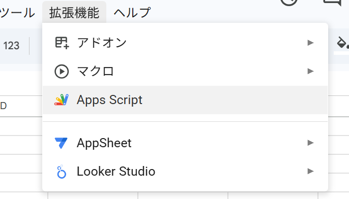 ② で、Apps Script を押すと